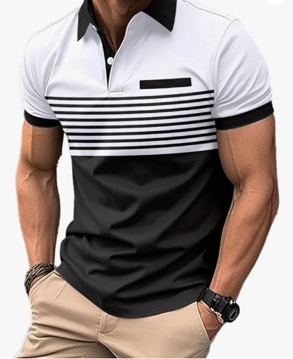 Men's Casual Polo Shirts Short Sleeve Fashion Golf Shirt Classic Striped Slim Fit T-Shirts